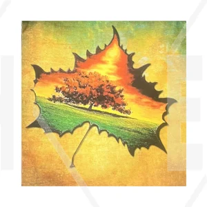 Çınar Yaprağı İçinde Doğa Manzaralı Baskılı Dekoratif Kırlent Kılıfı-40X40CM-MD038